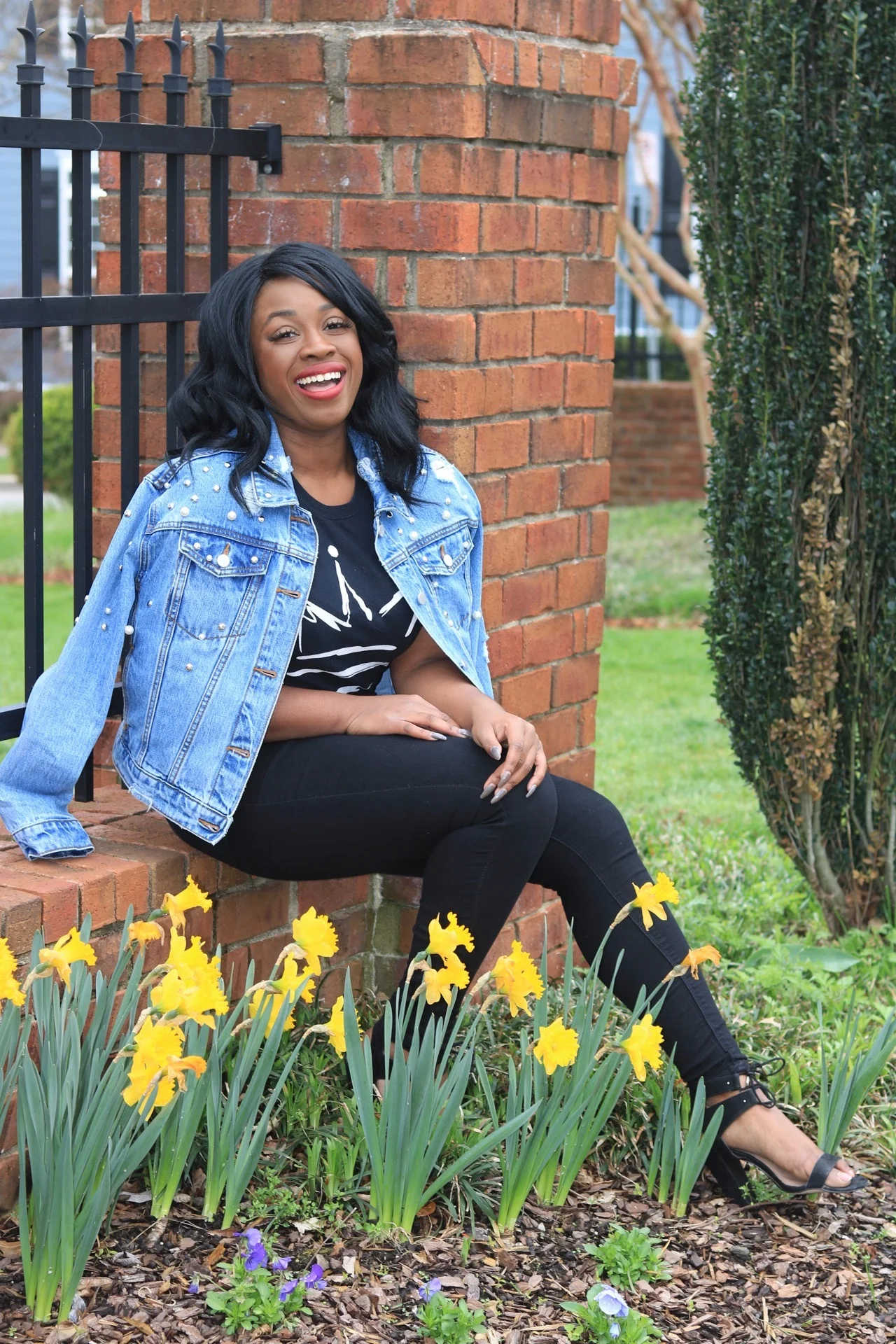 I absolutely love adding a fun pop of color to an outfit! My bold clutch is from DSW and is clearly the focal point of my look today. My crown tee is from Peculiar PPL Clothing, and I paired it with a high-waisted black skinny jean from Forever 21. These sandals which go with basically everything are from DSW and are oh so comfy! How cute is the pearl embellished denim jacket?! I picked it up from Macy's. Honestly, I am surprised at myself for purchasing it. This is definitely a piece that I would see on others and love, but shy away from when I get to the store. I am so glad I picked it up and can't wait to style it with an all white look! (Thinking out loud: maybe I should do a fun video showing multiple looks with the jacket as the staple!)